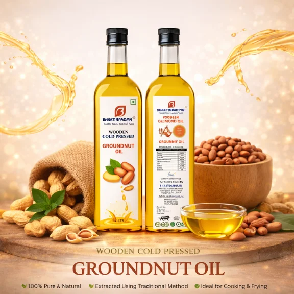 Groundnut oil is made from fresh groundnut through traditional and krushi natural cold pressing. This means it is rich in vitamin E and natural antioxidants.