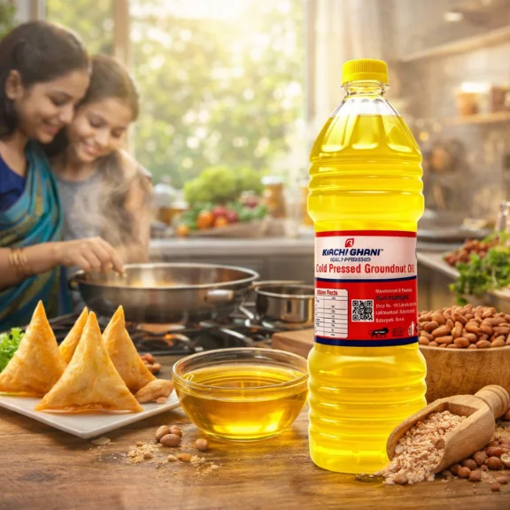 Our cold-pressed groundnut oil is made from fresh groundnut through traditional and krushi natural cold pressing. This means it is rich in vitamin E and natural antioxidants. This cold-pressed virgin groundnut oil is a real multi-tasker too.